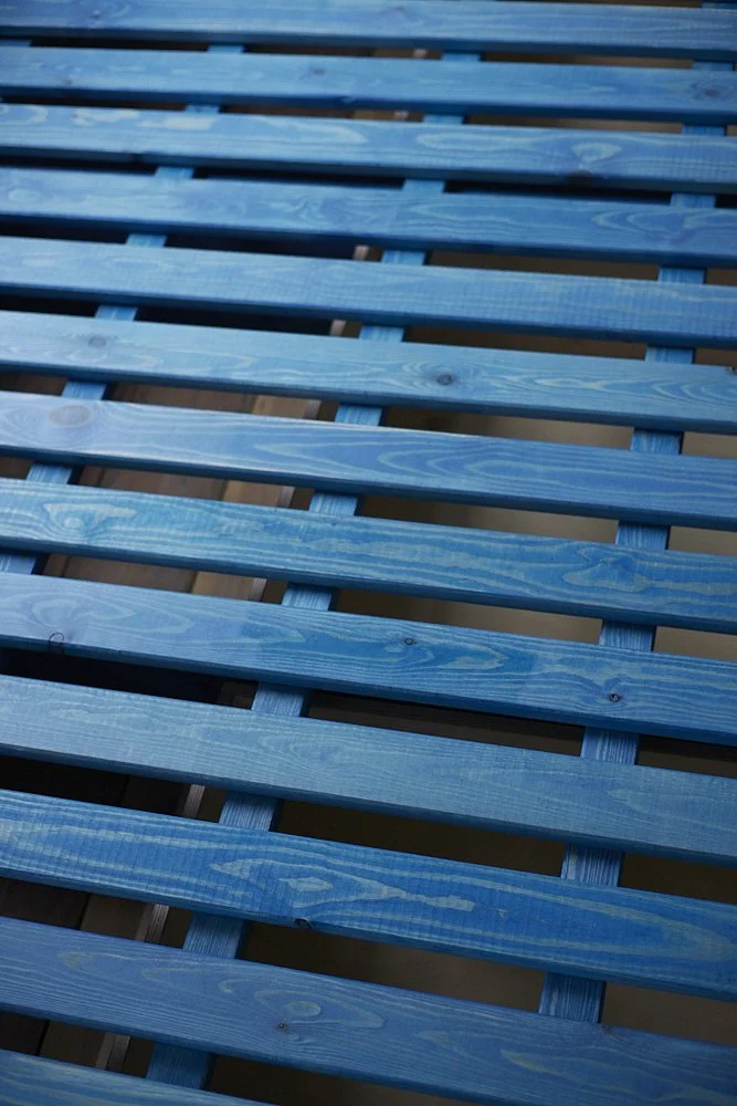 Reinterpreting the place of rest as a very sacred place: one of safety and joy, our place of dreams. Custom made in blue (for a water lover), and underneath the lattice-work are three oversized drawers